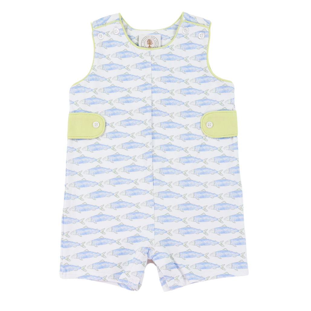 Reel in timeless style with this charming Jon Jon featuring a playful fish pattern that captures the spirit of adventure. Crafted from a soft, breathable blend of 95% cotton and 5% spandex, this romper moves with your little one while maintaining its shape through countless playdates and washes. Convenient shoulder buttons and snap closures at the crotch make diaper changes effortless, so you spend less time fussing and more time enjoying precious moments. Perfect for warm weather outings, family photos, or everyday wear, this classic piece combines comfort, durability, and undeniable charm.