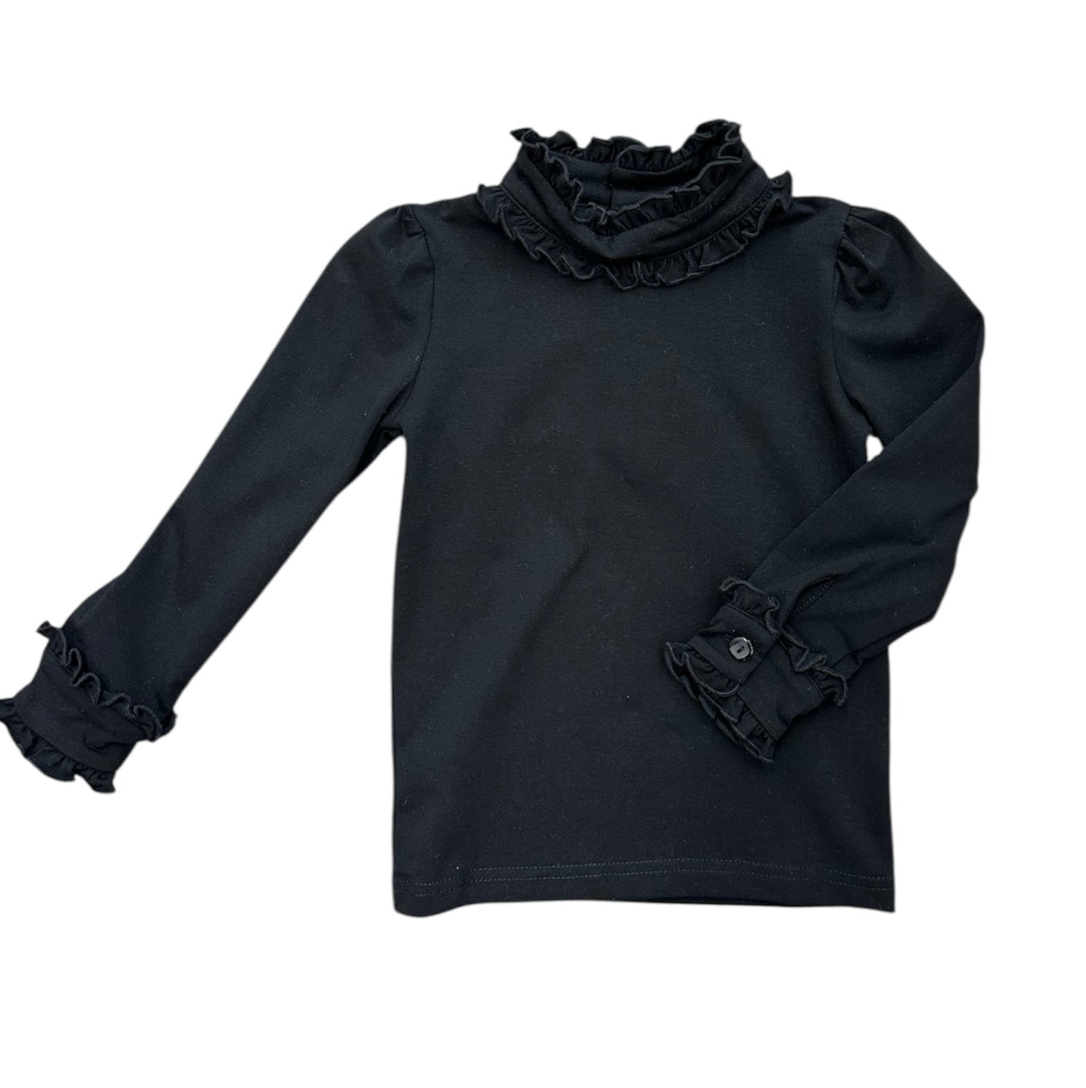 Elevate your little one’s wardrobe with the Lulu Bebe Mary Black Ruffle Top. Featuring delicate ruffles around the collar and wrists, this long sleeve top adds a touch of timeless elegance. Thoughtful button details on the back and wrists provide both style and ease of dressing. Perfect for special occasions or everyday charm, this top combines comfort and sophistication effortlessly.