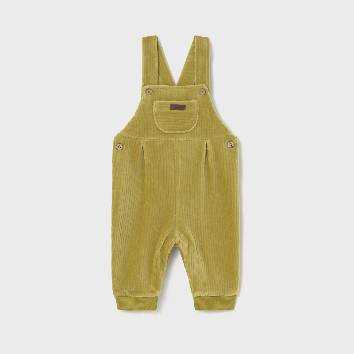 This charming outfit features convenient snap buttons at the crotch for effortless dressing and secure fastening with classic buttons. Crafted from warm, soft corduroy knit fabric, it offers exceptional comfort throughout the day. The functional front pocket adds practicality without sacrificing style, while the suspenders enhance its timeless design. Perfect for keeping cozy with ease and flair.