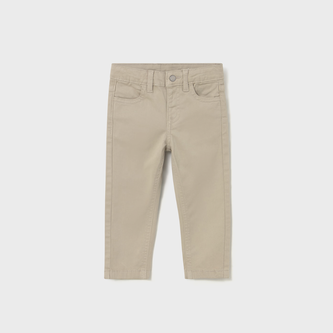 These slim-fit denim pants combine style and comfort with a press-stud front and simulated fly for effortless wear. The adjustable elastic waistband ensures a personalized fit, while multiple pockets add practicality. Made with sustainable hardware and finished using eco-friendly Ecowash techniques, they offer a stylish look with a reduced environmental footprint. A versatile essential from the Mayoral Basic collection, these pants are perfect for everyday wear.