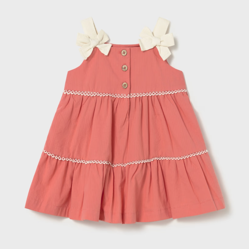 Mayoral's charming orange dress brings effortless style to your little one's wardrobe. Crafted from soft cotton, this tiered design offers comfortable movement for active babies and toddlers. Delicate bows accent the straps for an adorable finishing touch, while functional chest buttons make dressing and diaper changes quick and convenient. Perfect for playdates, family gatherings, or everyday wear, this dress combines practicality with undeniable charm that parents and grandparents will love.