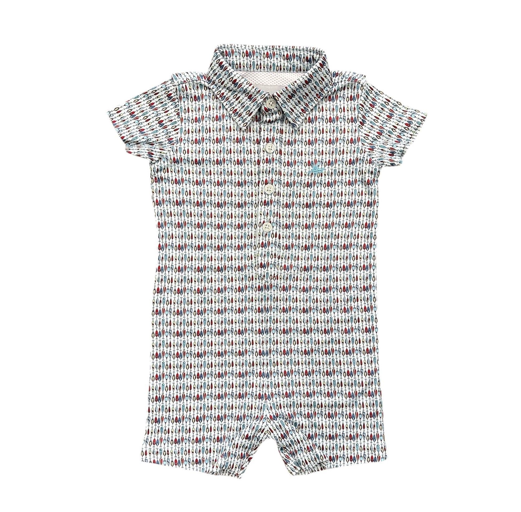 Adorable baby boys romper featuring a charming fishing lures design perfect for little anglers in training. Crafted with soft, comfortable fabric, this polo-style romper keeps your baby looking dapper while staying cozy. Convenient snap closures at the crotch make diaper changes quick and easy. Ideal for casual playdates, family outings, or photo-worthy moments. A delightful choice for parents who love outdoor-inspired style.